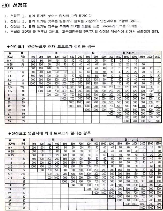 전동기 출력의 선정